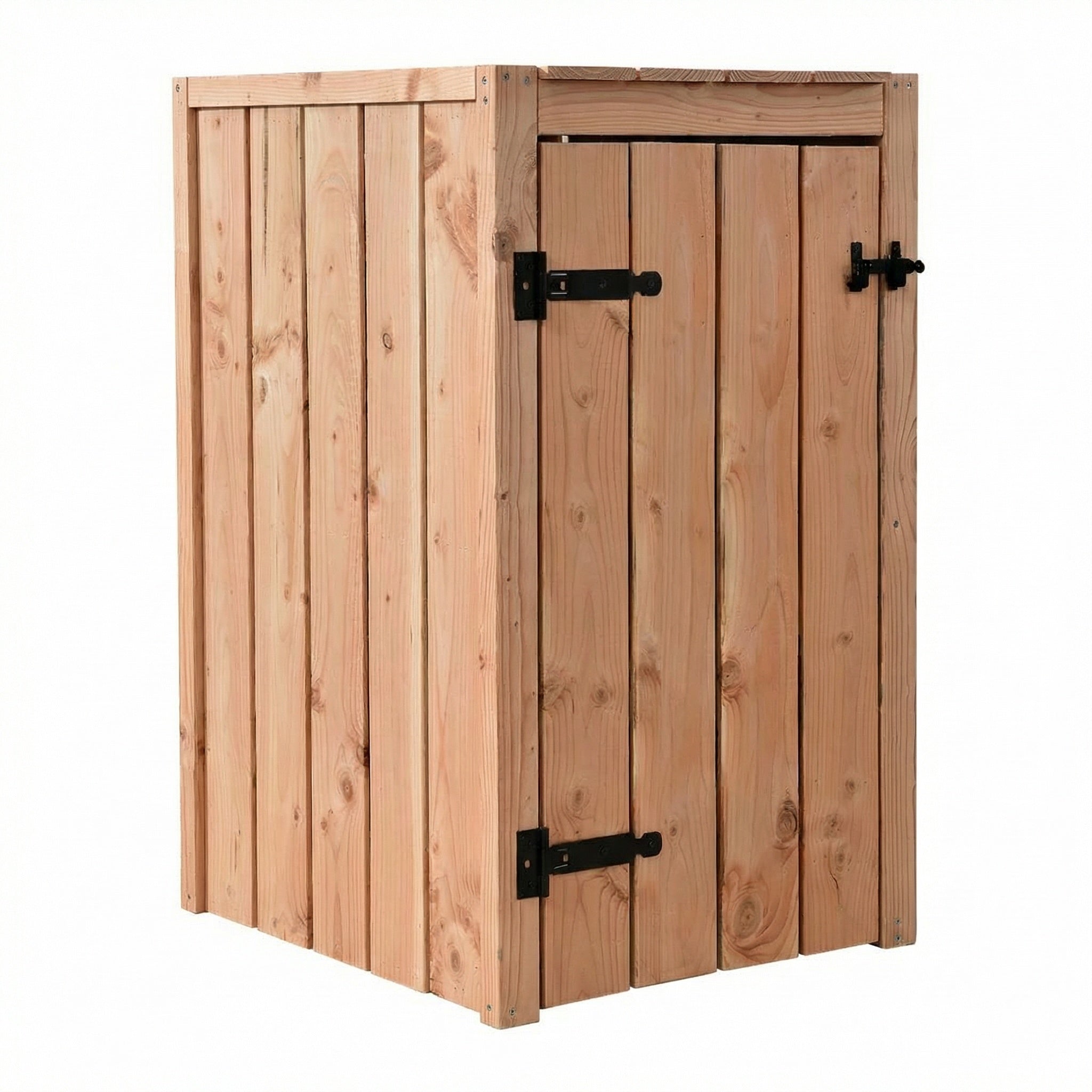 Deze container ombouw is gemaakt van Douglas hout blank, wat zorgt voor een warme en natuurlijke uitstraling in de tuin.