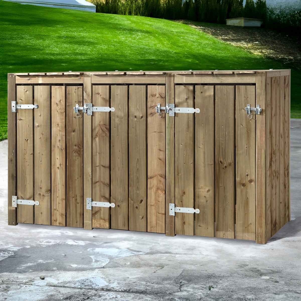 Materiaal: Geïmpregneerd hout met gegalvaniseerd hang- en sluitwerk