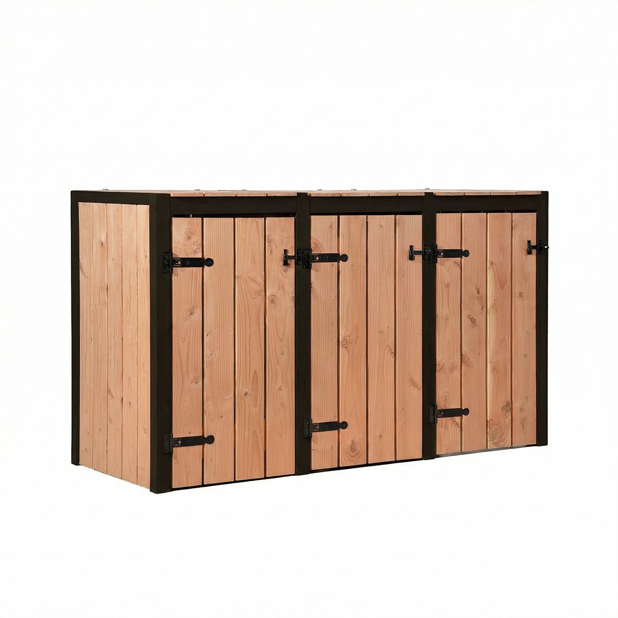 Het Douglas houten ontwerp met zwart raamwerk zorgt voor een moderne uitstraling in uw tuin.