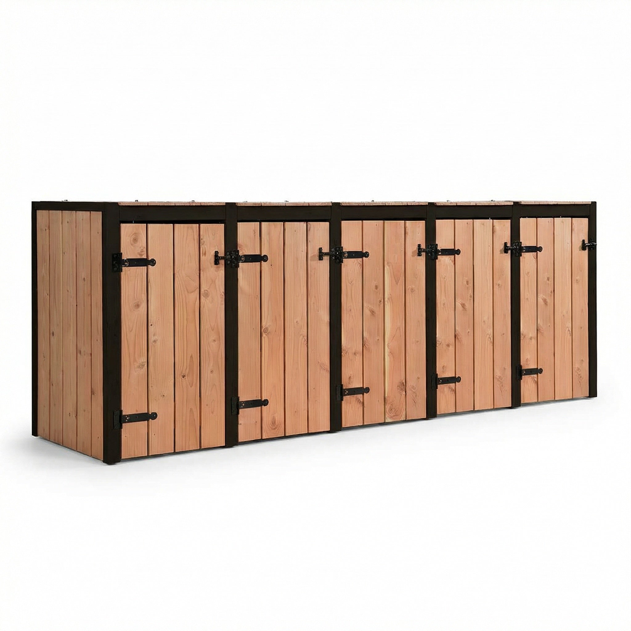 De container ombouw Antwerpen voor 5 containers van Wood & Steel Tuindecoratie biedt een nette en duurzame oplossing voor het opbergen van meerdere kliko’s.