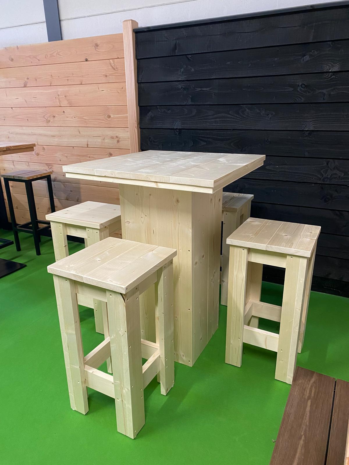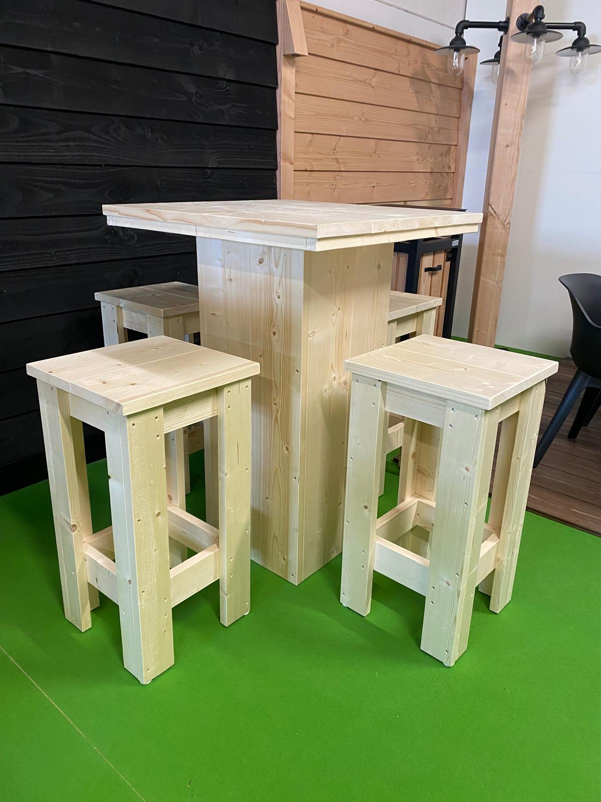 De Vuren Barset van Wood & Steel is een complete buitenbar voor 4 personen. Een stevige bartafel en vier bijpassende barkrukken, allemaal uitgevoerd in vuren hout.