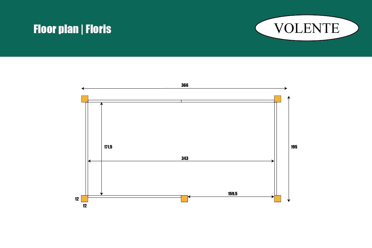Afmetingen: 369 x 196 x 208 cm (L x B x H)