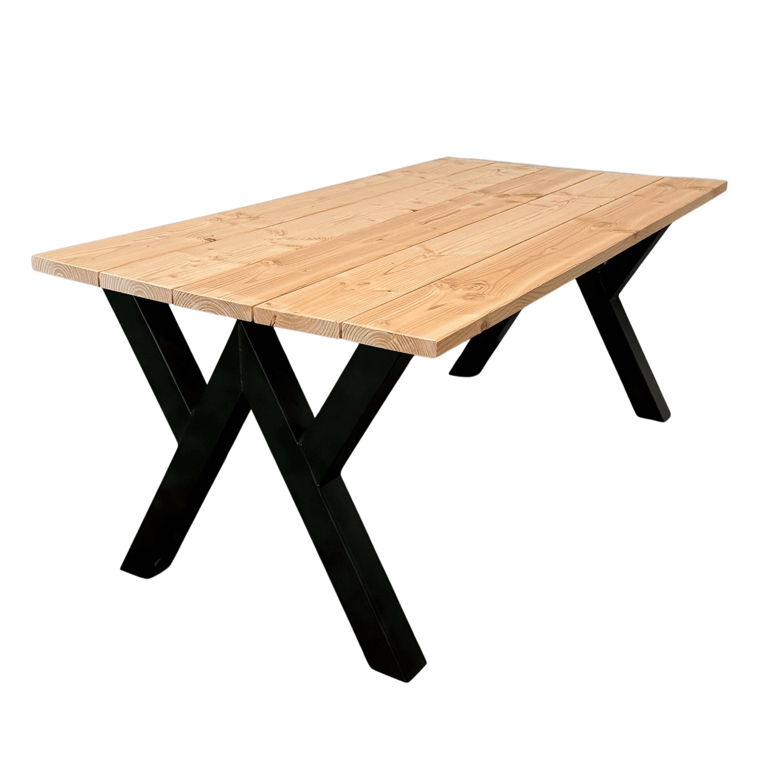 Duurzaam en robuust: Het gebruik van douglashout en de stevige WV-poten zorgt ervoor dat de tafel bestand is tegen de elementen en jarenlang meegaat.