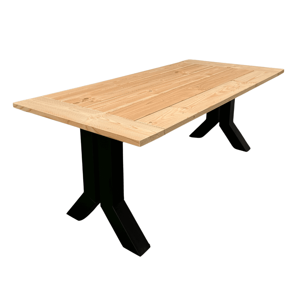 Duurzaam en robuust: Het gebruik van douglashout en de stevige Y-poten zorgt ervoor dat de tafel bestand is tegen verschillende weersomstandigheden en jarenlang meegaat.