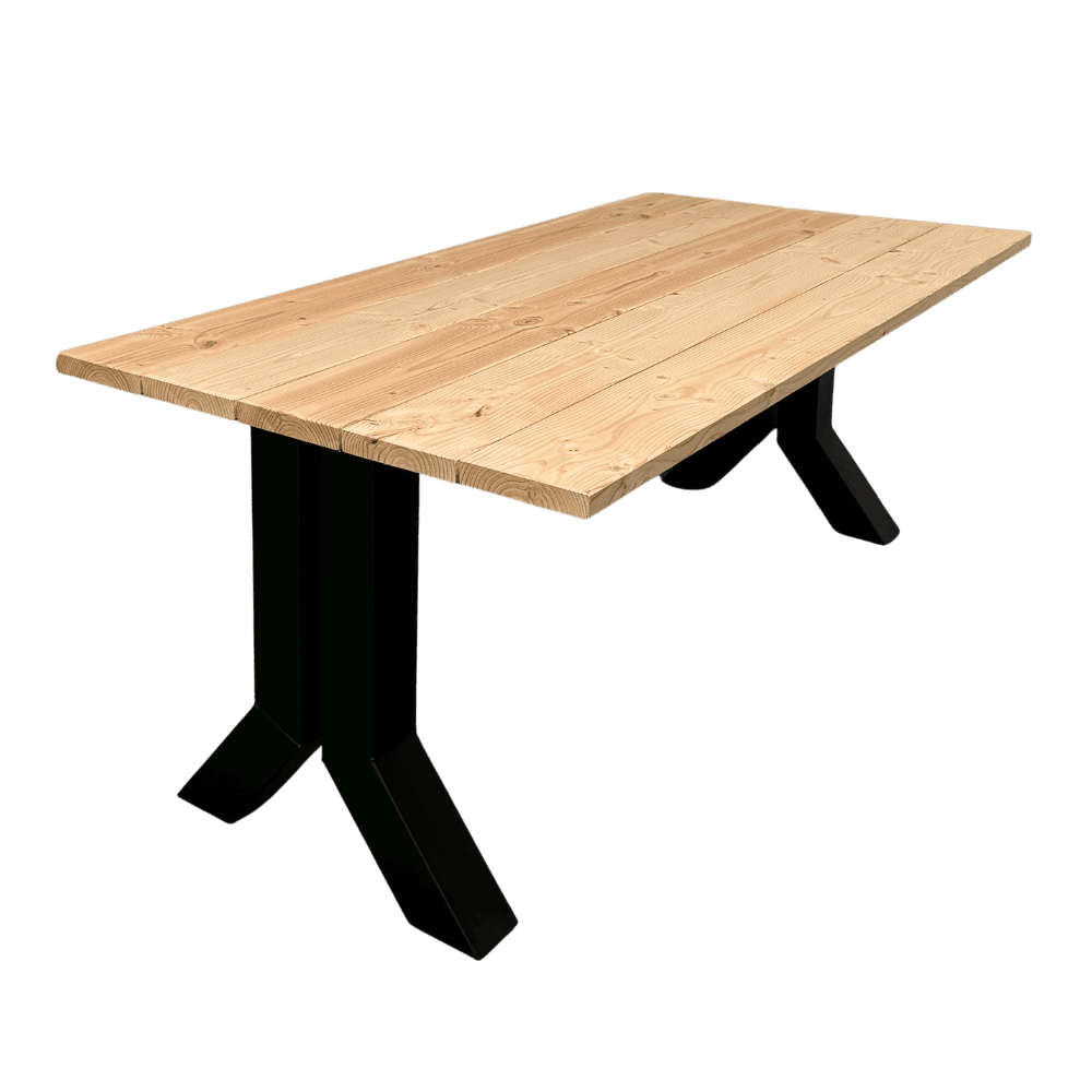 Duurzaam en robuust: Het gebruik van douglashout en de stevige Y-poten zorgt ervoor dat de tafel bestand is tegen de elementen en jarenlang meegaat.
